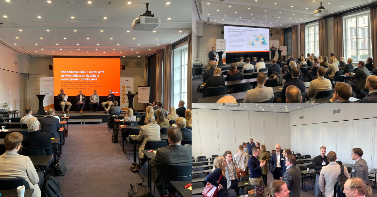 The panel discussion, titled "Agility in risk management with data and stakeholder collaboration", brought together three practitioners from different organisational contexts: Tommi Paavilainen, VP of Global Risk Management at KONE; Aki Rantanen, Head of Risk Management at Veikkaus; and Vesa Hakanen, EMEA Supply Chain Risk Solution Leader at AON. The conversation was moderated by Mikaeli Langinvainio, CEO of Inclus.